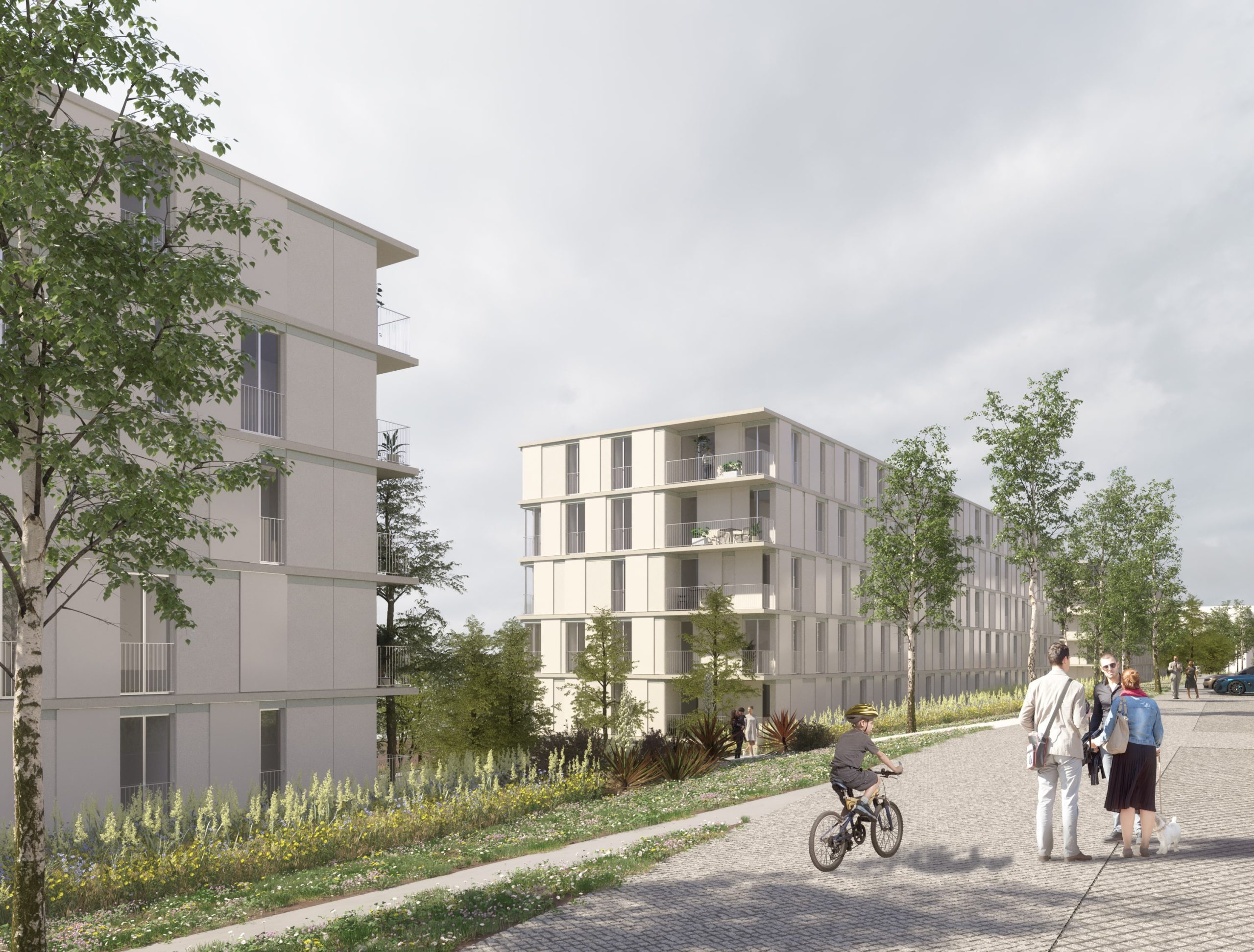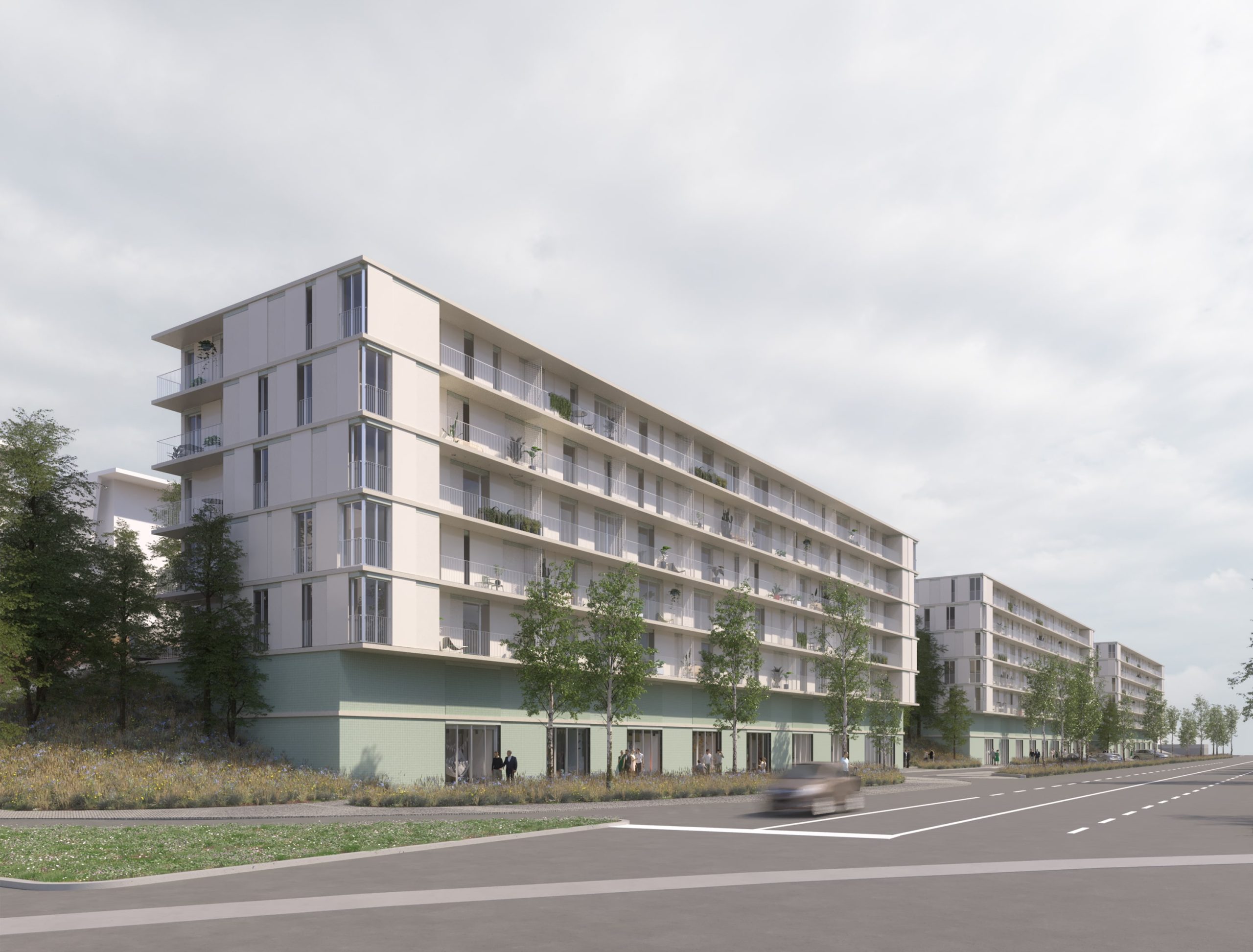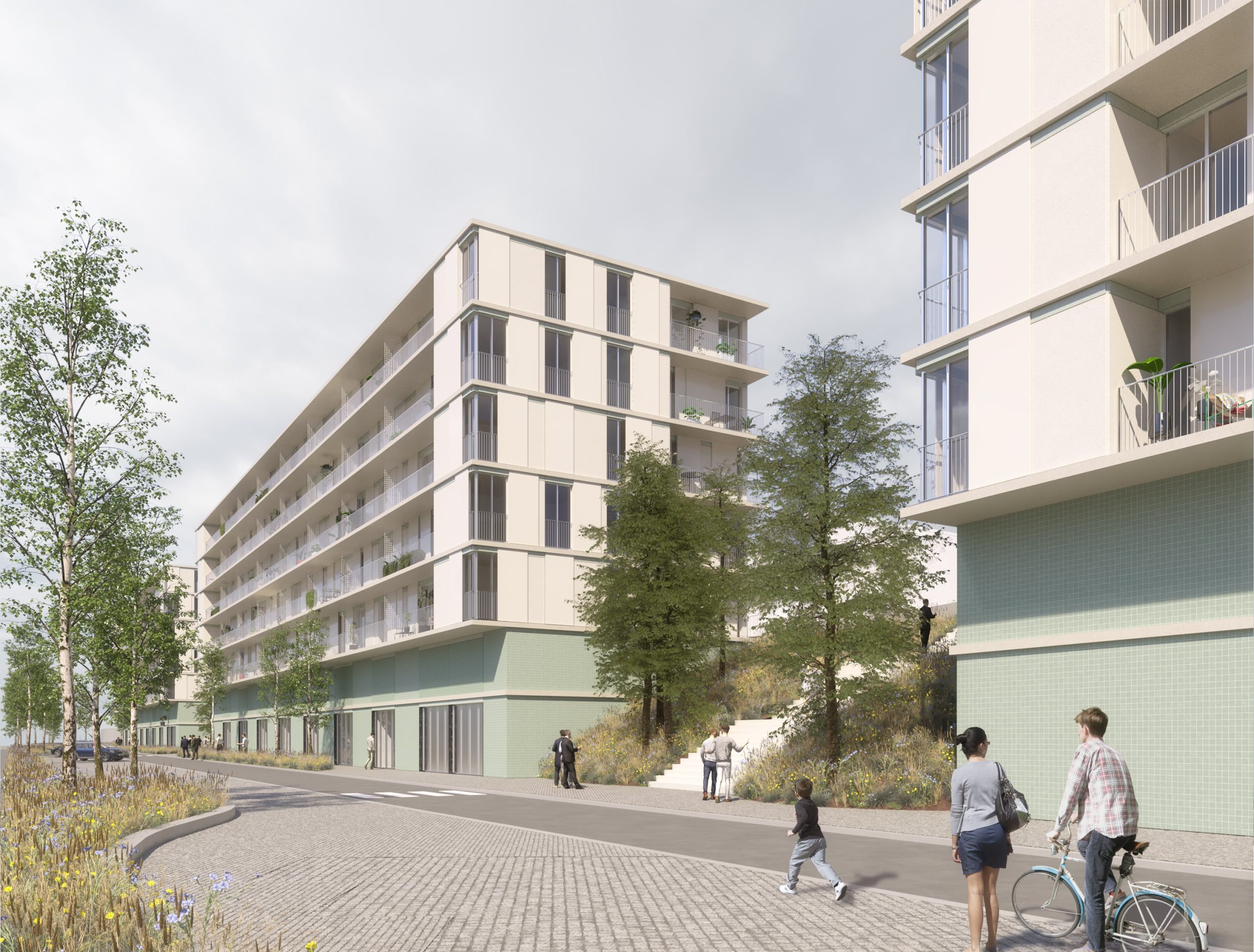 A intervenção desenvolve-se numa área de 11.698 m², com uma implantação edificada de 4.795 m². O projeto prevê edifícios de até sete pisos acima da cota de soleira, complementados por pisos enterrados destinados a estacionamento e arrecadações. O programa habitacional inclui 150 unidades residenciais, acompanhadas por 915 m² de espaços comerciais e de serviços, totalizando uma área bruta de construção acima do solo de aproximadamente 13.800 m².